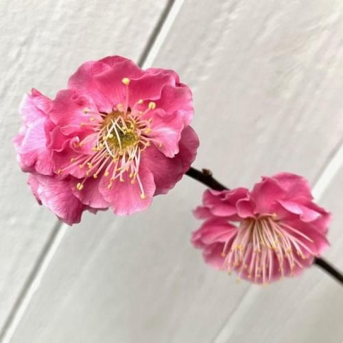 八重寒紅は、濃い紅色の花で、八重咲きの中輪品種です。花が咲く時期が寒のころであることからついた名前です。樹高は3〜6m、野梅系の育てやすい品種です。