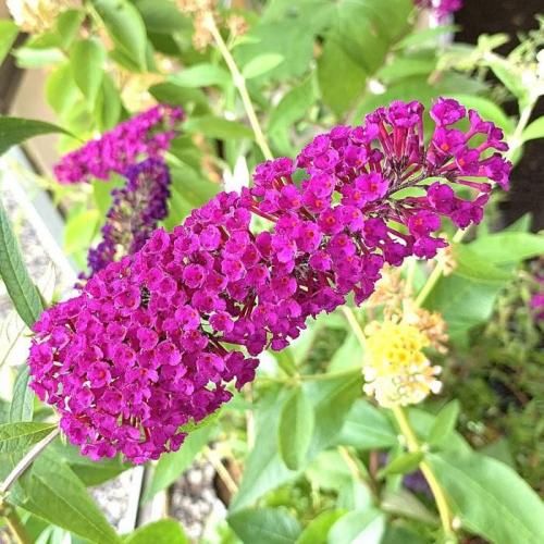 ブッドレア(ブットレア)は初夏から秋にかけて、涼しげで長い円錐形の花穂をたくさんつける、開花期が長い花木です。花が甘く香り、チョウが集まるため、バタフライブッシュとも呼ばれています。