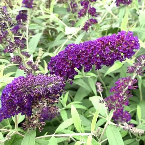 ブッドレア(ブットレア)は初夏から秋にかけて、涼しげで長い円錐形の花穂をたくさんつける、開花期が長い花木です。花が甘く香り、チョウが集まるため、バタフライブッシュとも呼ばれています。