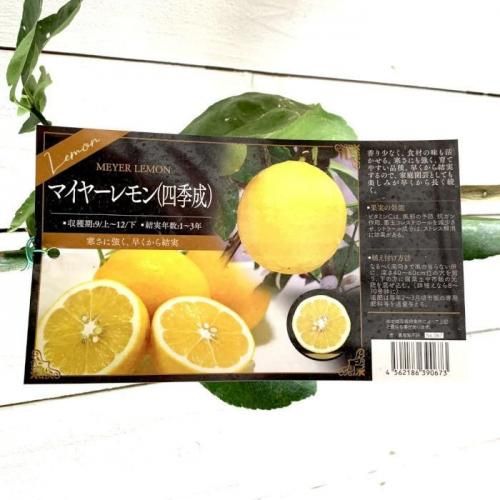 マイヤーレモンは、オレンジ・マンダリンとレモンの交配種で、一般的な品種よりも酸味が少なく柔らかな風味です。ジューシーな果実が特徴です。成長すると一年を通して実をつけますが、冬の収穫量が最も多いです。